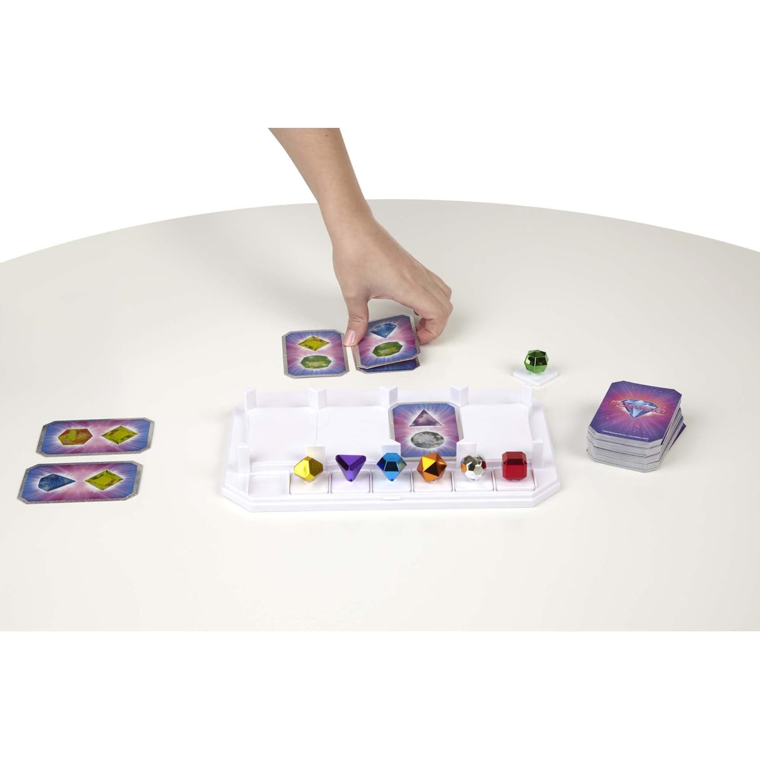 In Bejeweled Frenzy you must match 3 gems in a row to collapse the row. You also collect gems for extra bonus points. When you run out of cards you add up everyone's points to see who won. This game is really addicting and really fun! You can play with up to four players. The suggested age is 8 and up. My son is 5 and he did pretty good playing this with us. The kids love playing with the added "gems" included. They call them their treasure and sometimes play with them outside of the game.